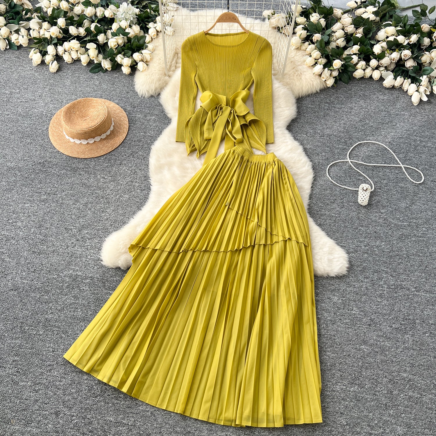 Autumn Temperament Commuting Small Straight-Necked Cardigan Dress Designer Folded Short-Sleeved Top Dress Dress HZ0107