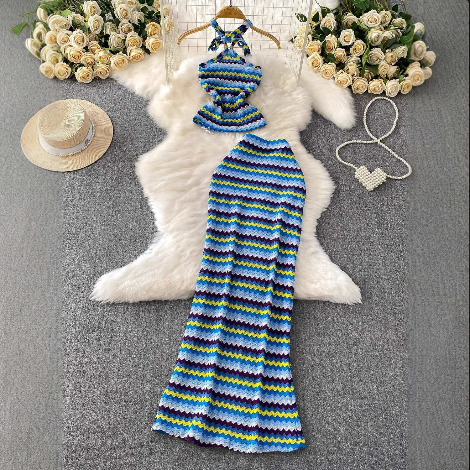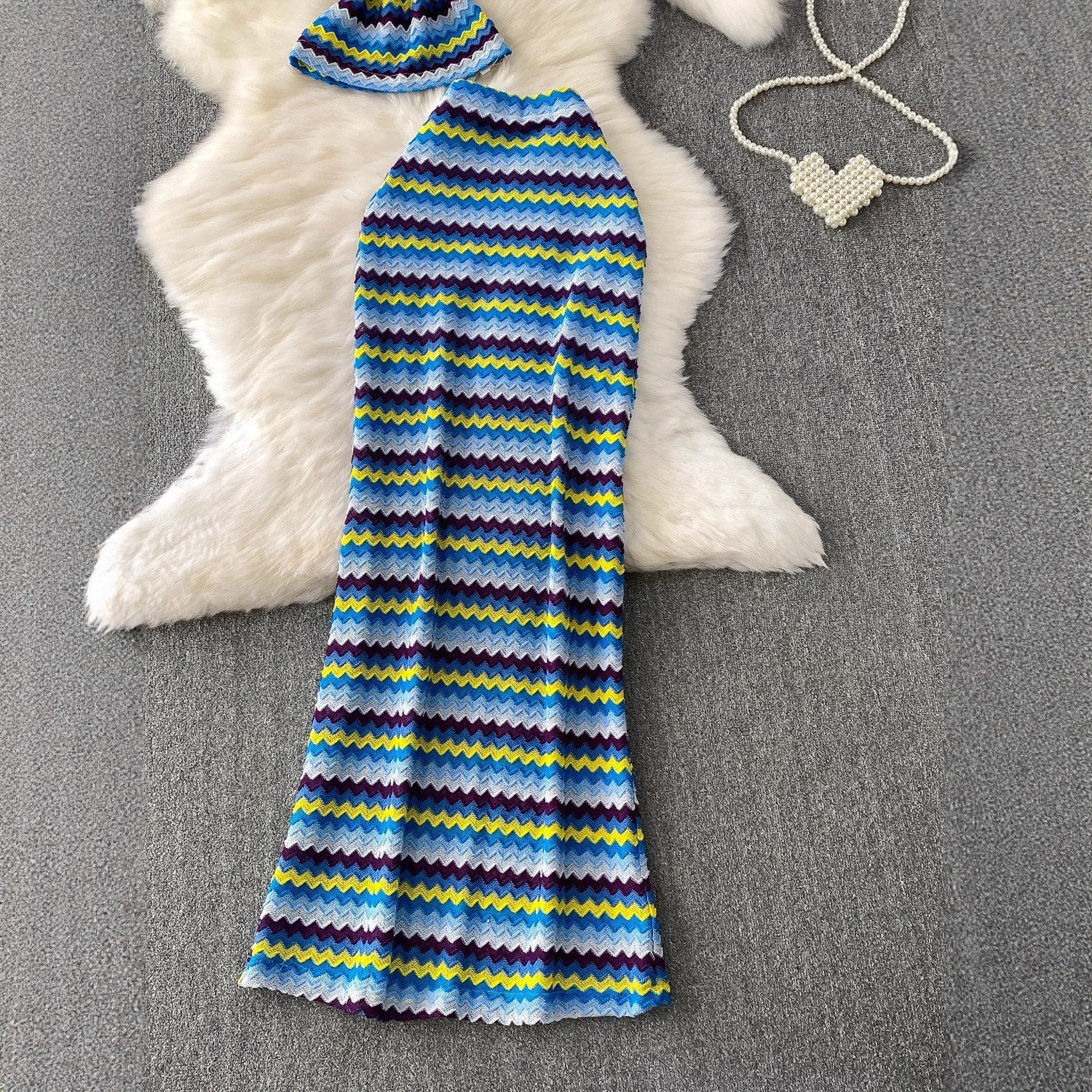 AM040503 Summer New Sexy Hollow Half-High Collar Dress Party Dinner Nail Beads High Waist Dress Dress HZ0107