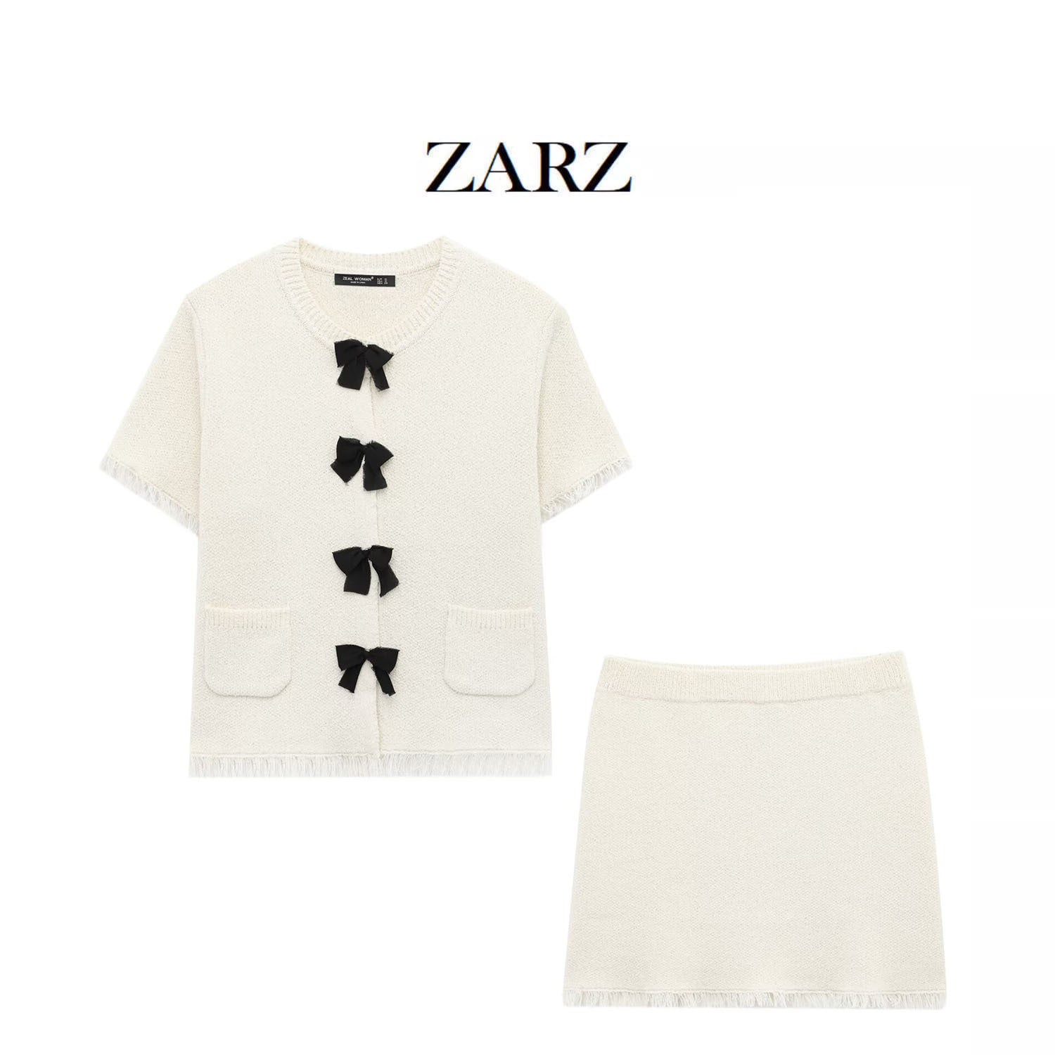 ZARZ Homemade New Women's Bow Trim With Short-Sleeved Knit Coat Knitted Miniskirt HZ0107