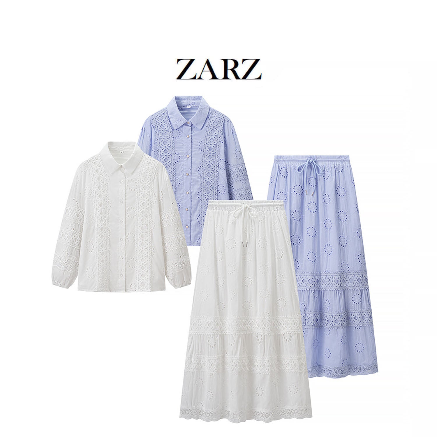 ZARZ Homemade New Women's Lace Sticker Shirt Loose Dresses Two-Piece Set HZ0107