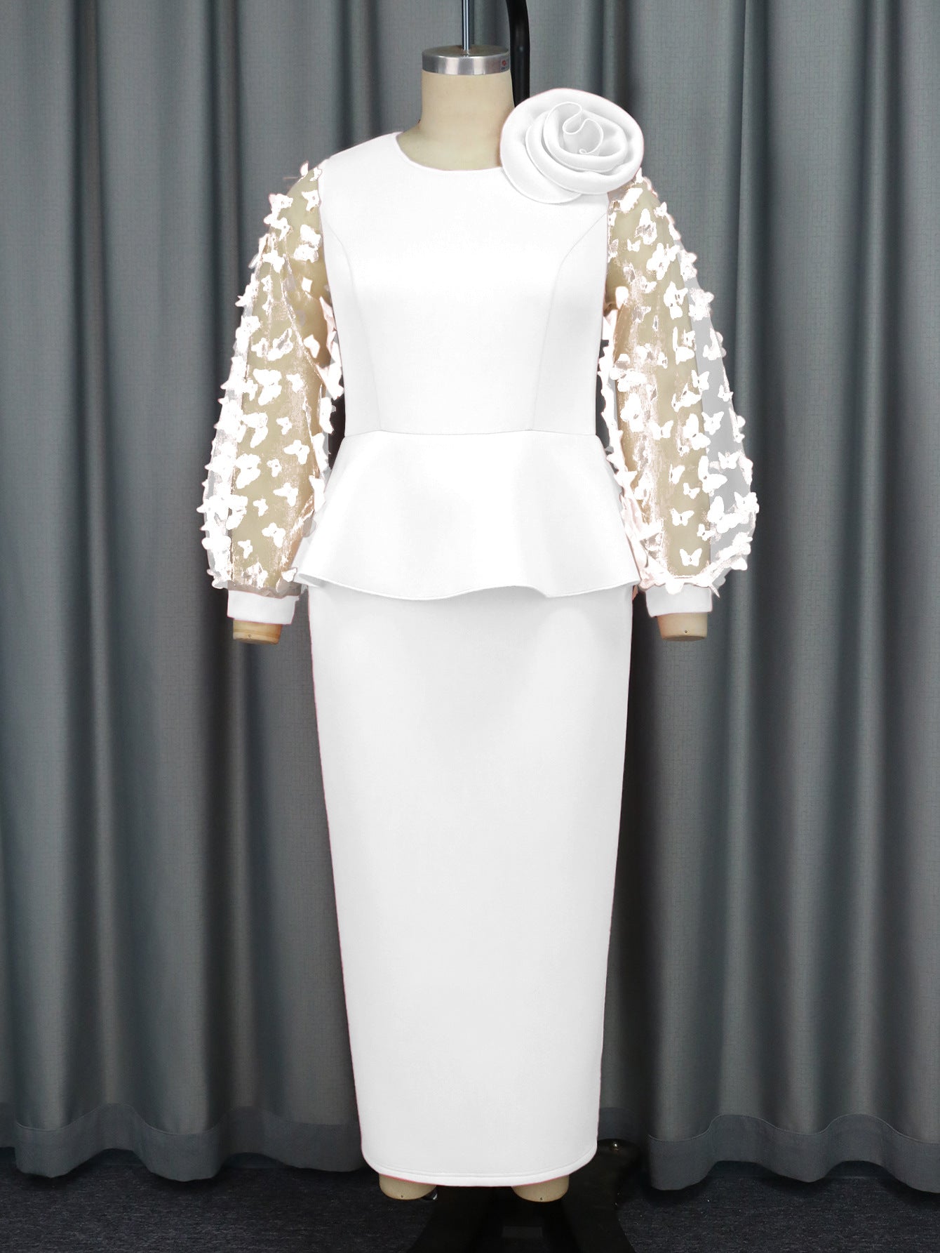 AM030536 Fashion Three-Dimensional Flower Dress Sexy Shoulder Slanted Hundredfolded Dresses HZ0107
