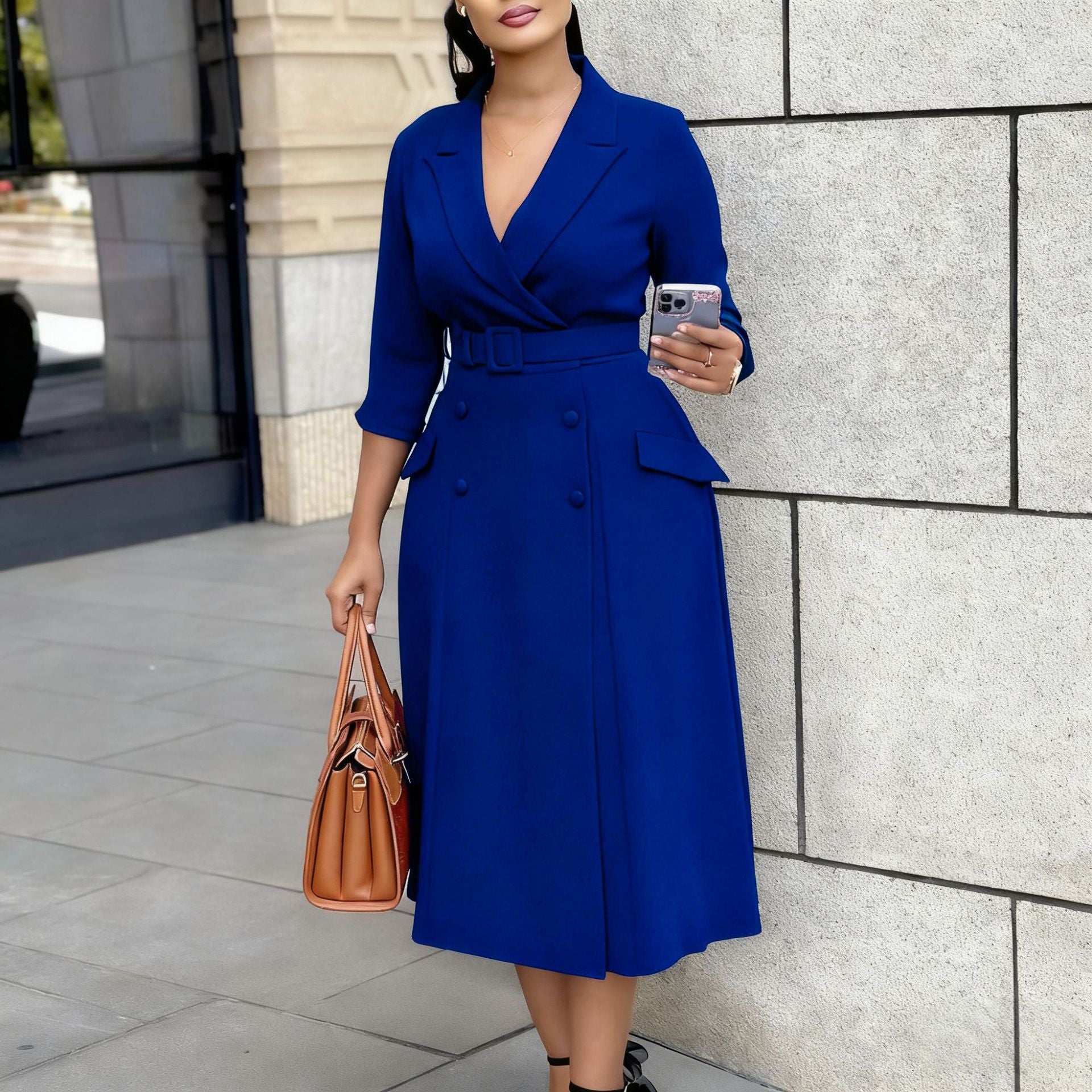 Autumn Temperament Commuting Small Straight-Necked Cardigan Dress Designer Folded Short-Sleeved Top Dress Dress HZ0107