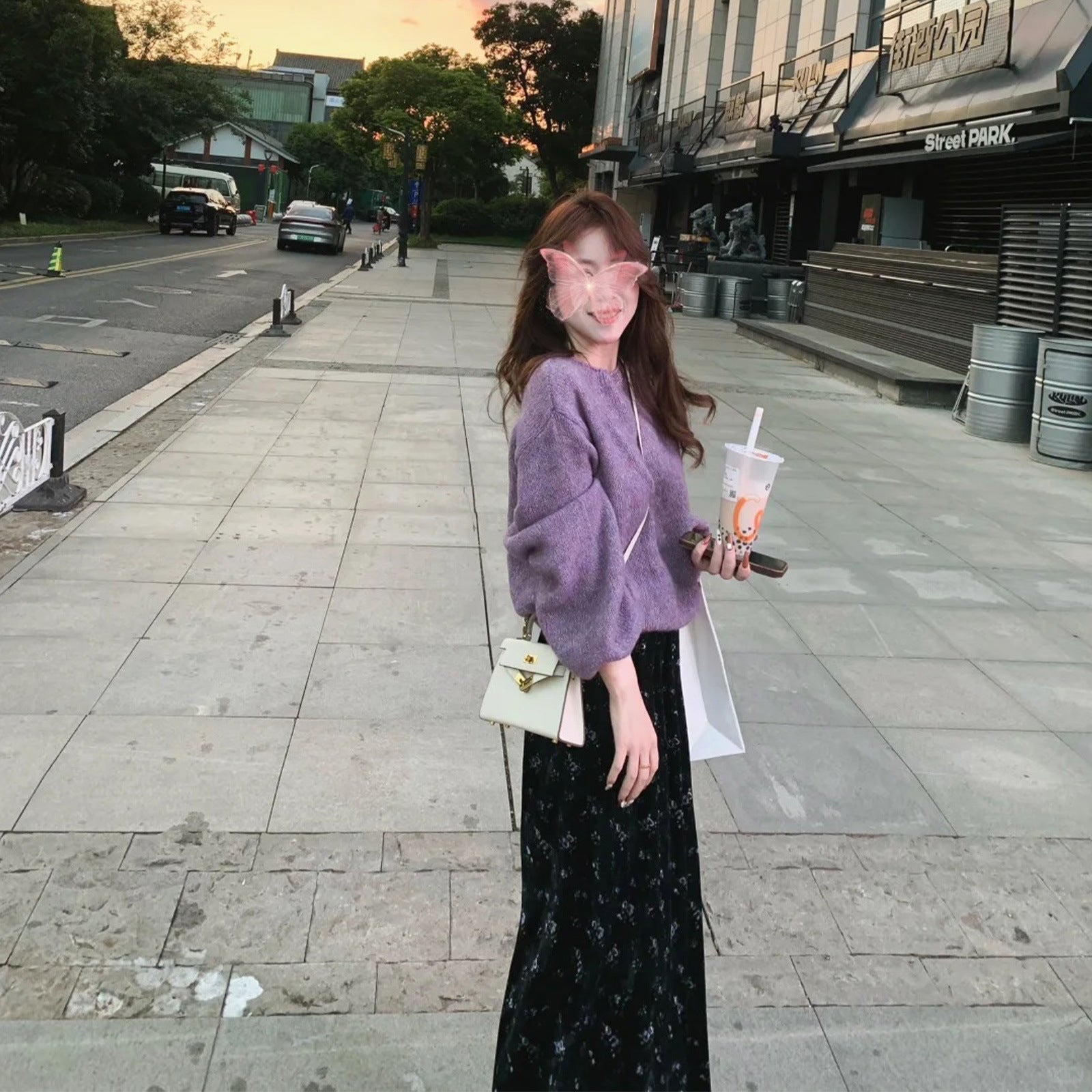 Korean Gentle Lazy Wind Purple Round Sweater Woman 2025 Autumn And Winter Small Loose Soft Knitwear