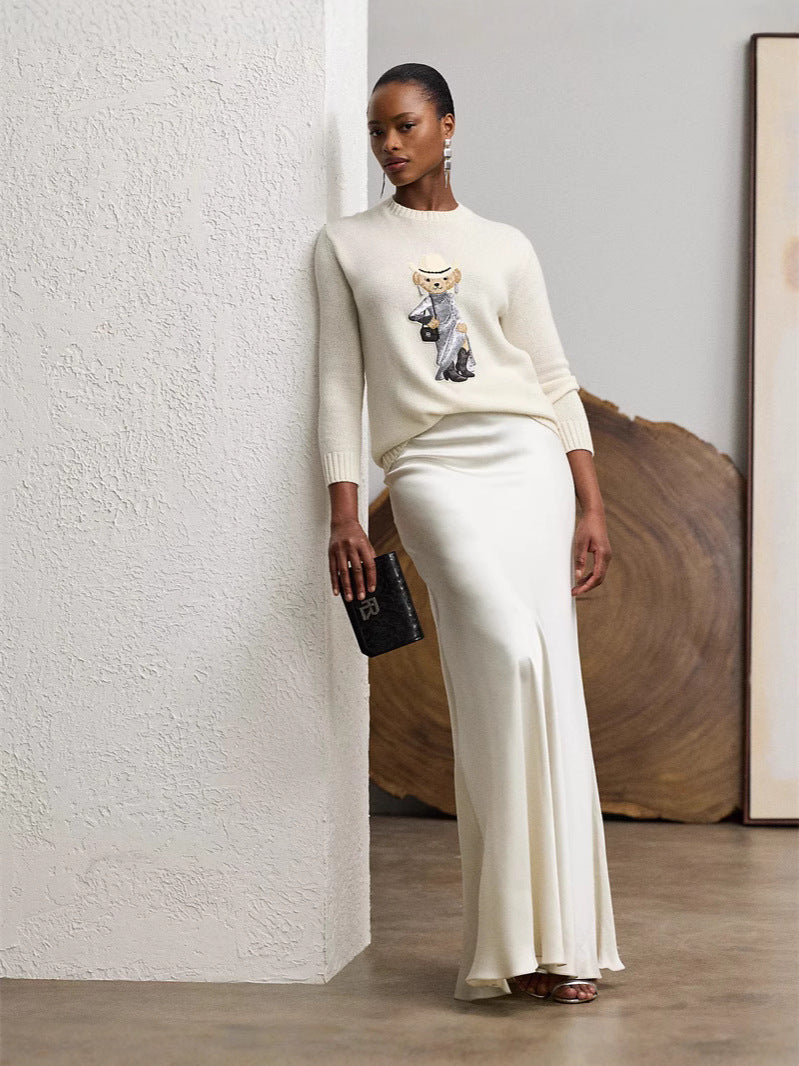 New Women's Round-Necked Bear Cartoon Casual Free Sweater Raff Cashmere Knitted Shirt Girl