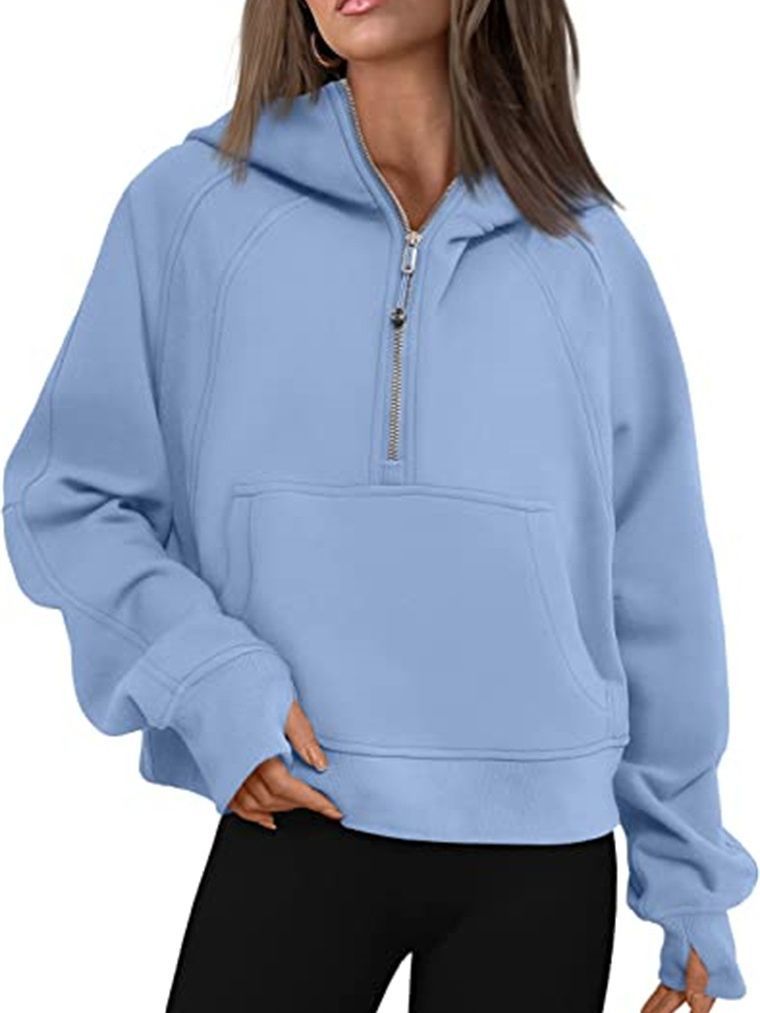 2025 Autumn And Winter New Fashion Leisure Sports Half Zipper Hooded Short Plus Velvet Wear HZ0107
