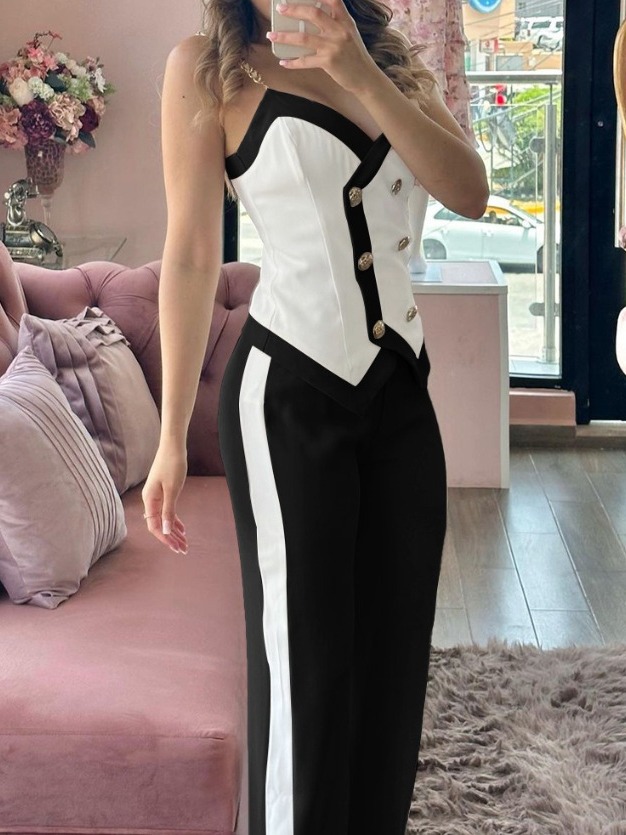 2025 Fashion Double Buckle Sueding Set Women's Suit HZ0107