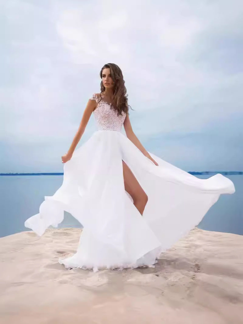 2025 New Lace Chiffon Dress Ball White Evening Dress Open Dress
