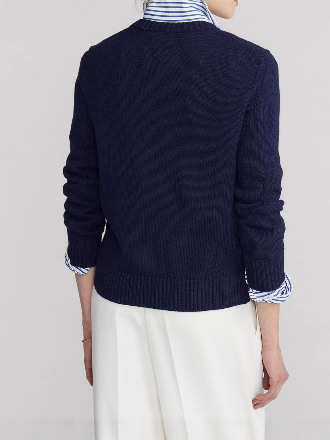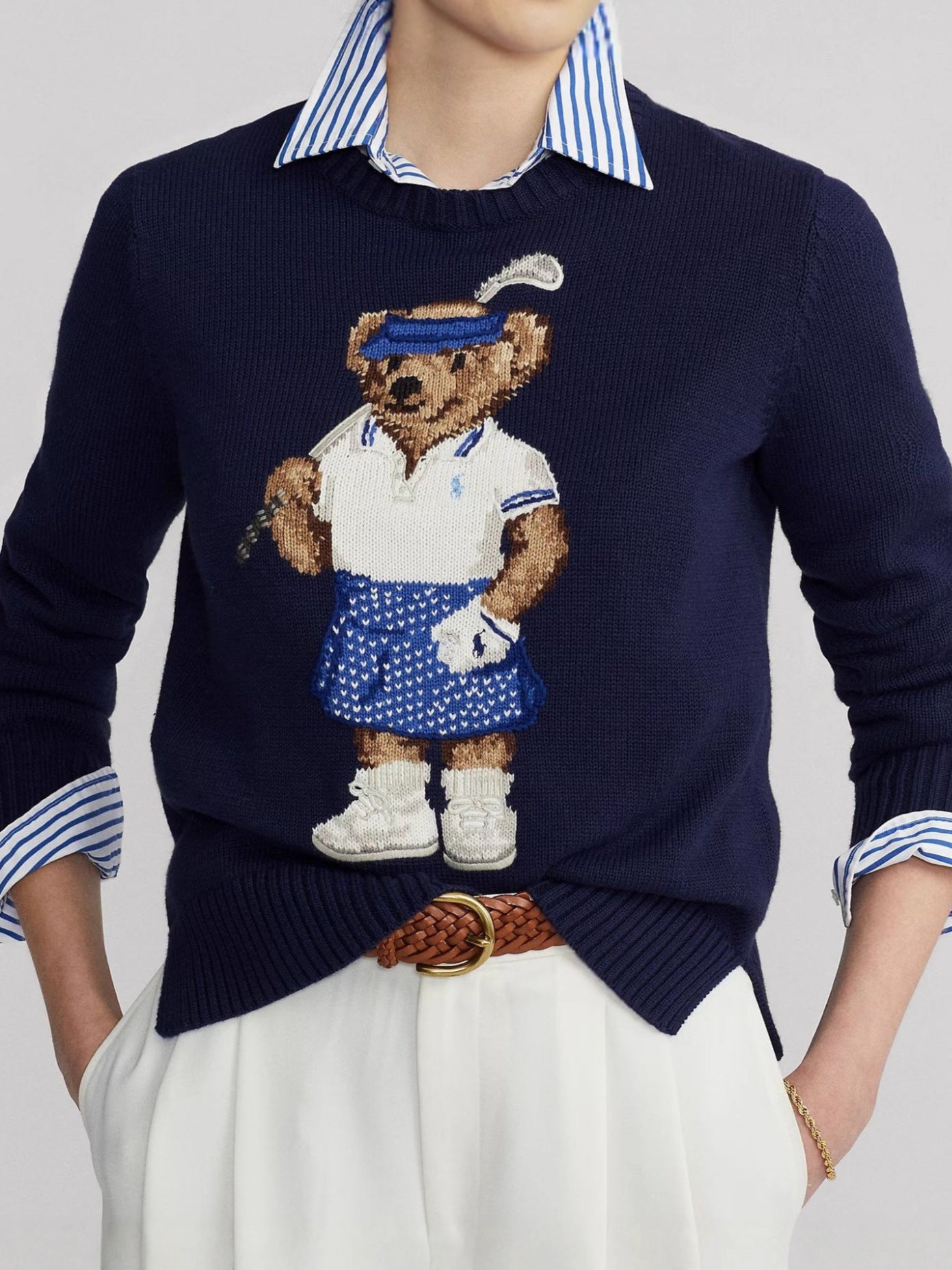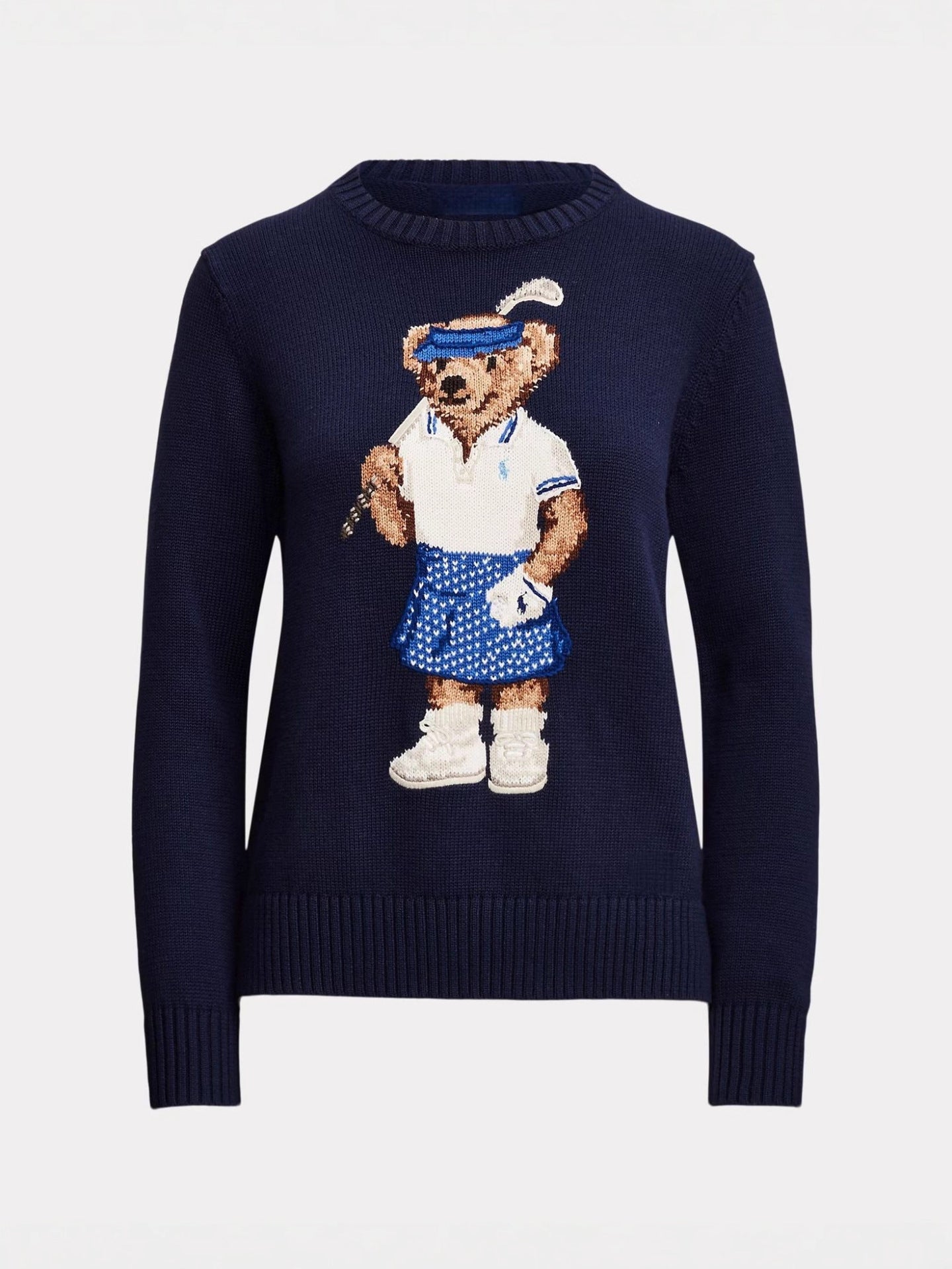 2025RL Autumn/Winter Casual Bear Embroidered Round Collar Collar Cotton Knitted Sweater For Adult Women Long-Sleeved Sweater Couple