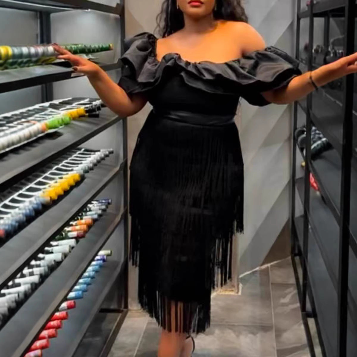 AM030536 Fashion Three-Dimensional Flower Dress Sexy Shoulder Slanted Hundredfolded Dresses HZ0107