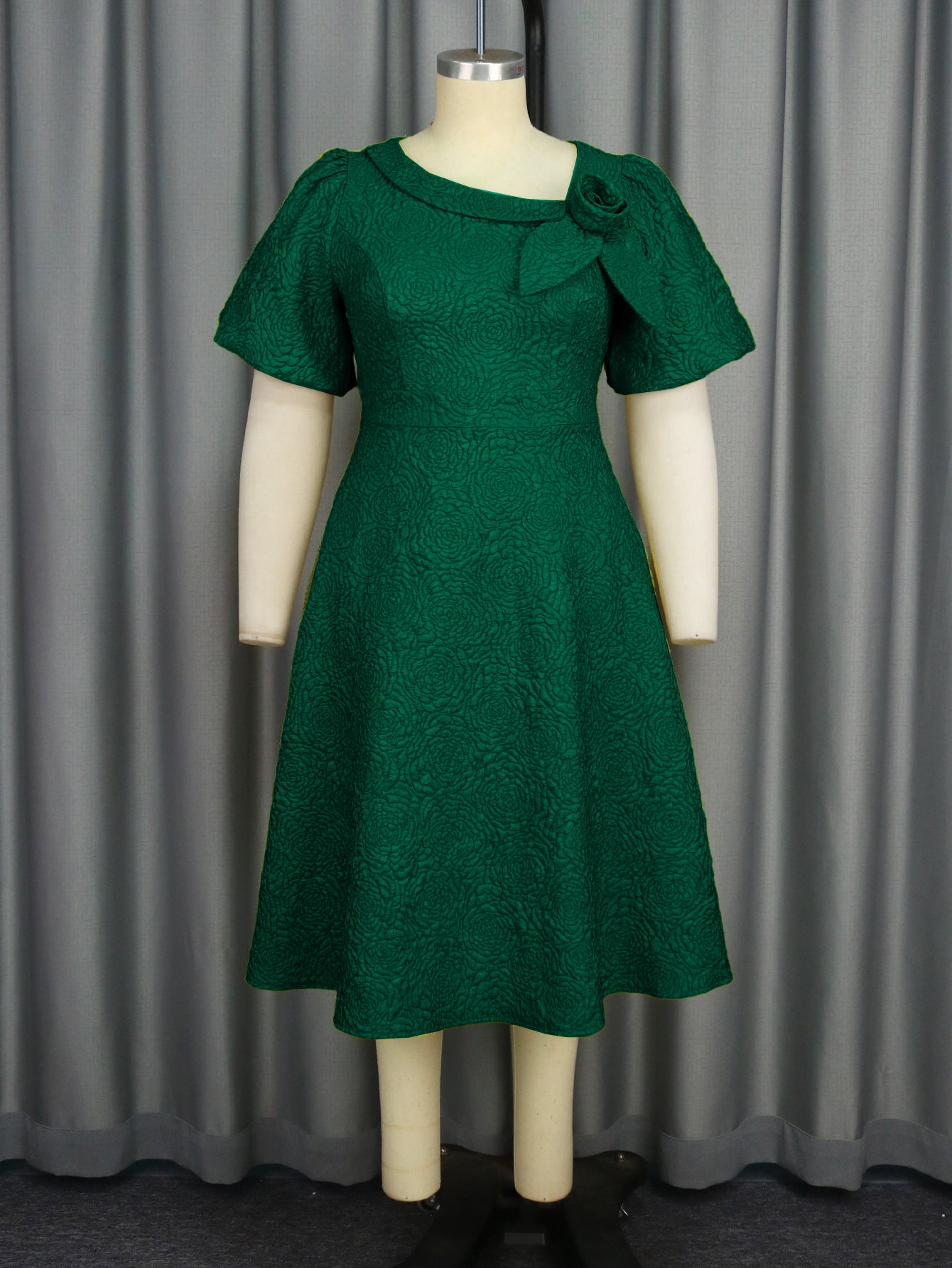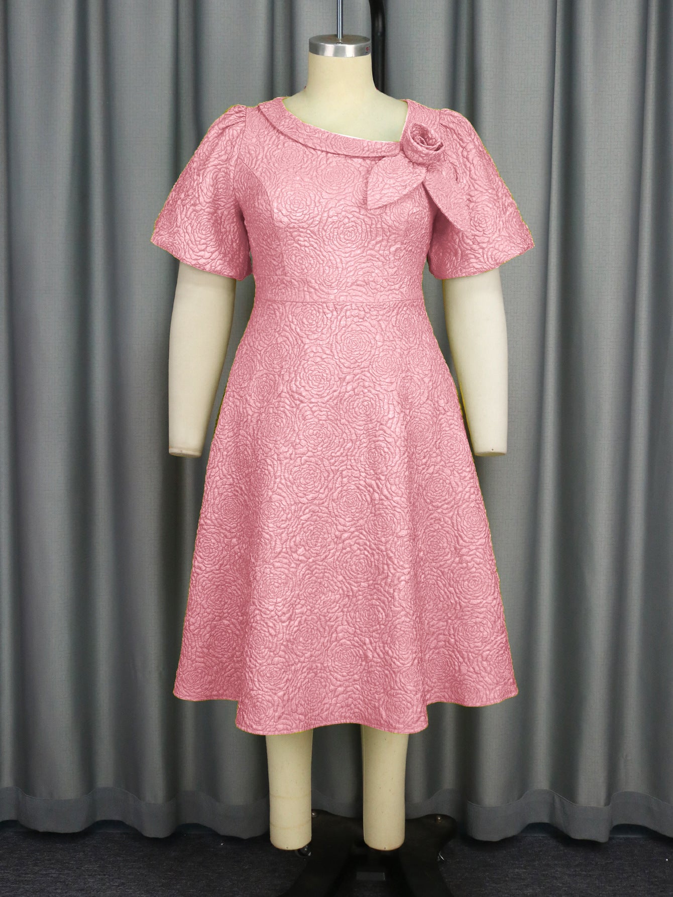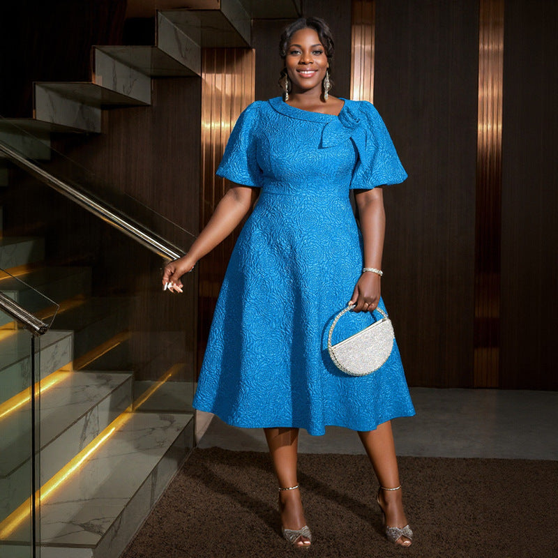 AM030536 Fashion Three-Dimensional Flower Dress Sexy Shoulder Slanted Hundredfolded Dresses HZ0107