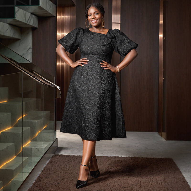 Autumn Temperament Commuting Small Straight-Necked Cardigan Dress Designer Folded Short-Sleeved Top Dress Dress HZ0107