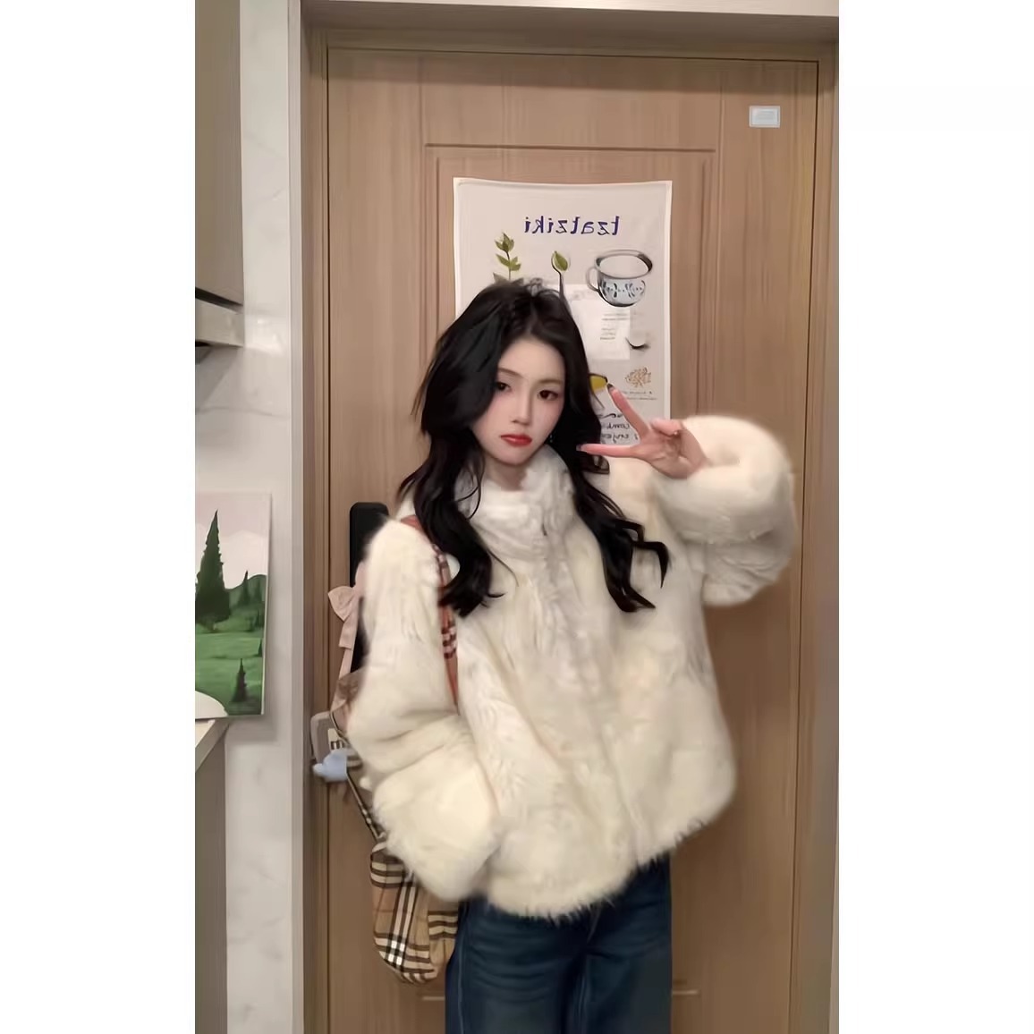 Autumn And Winter Plush Coat Women's Collar Plush Gentle Wind Loose Warm Set Of Short Top