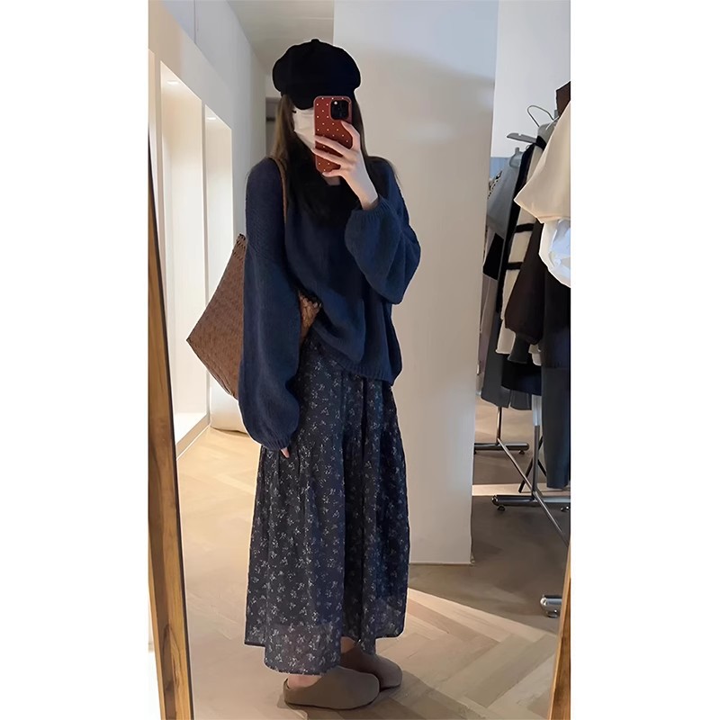 Autumn With A Set Of 2025 Purple Gentle Temperament Sweater Knitted Jersey Half Dress Two-Piece Skirt
