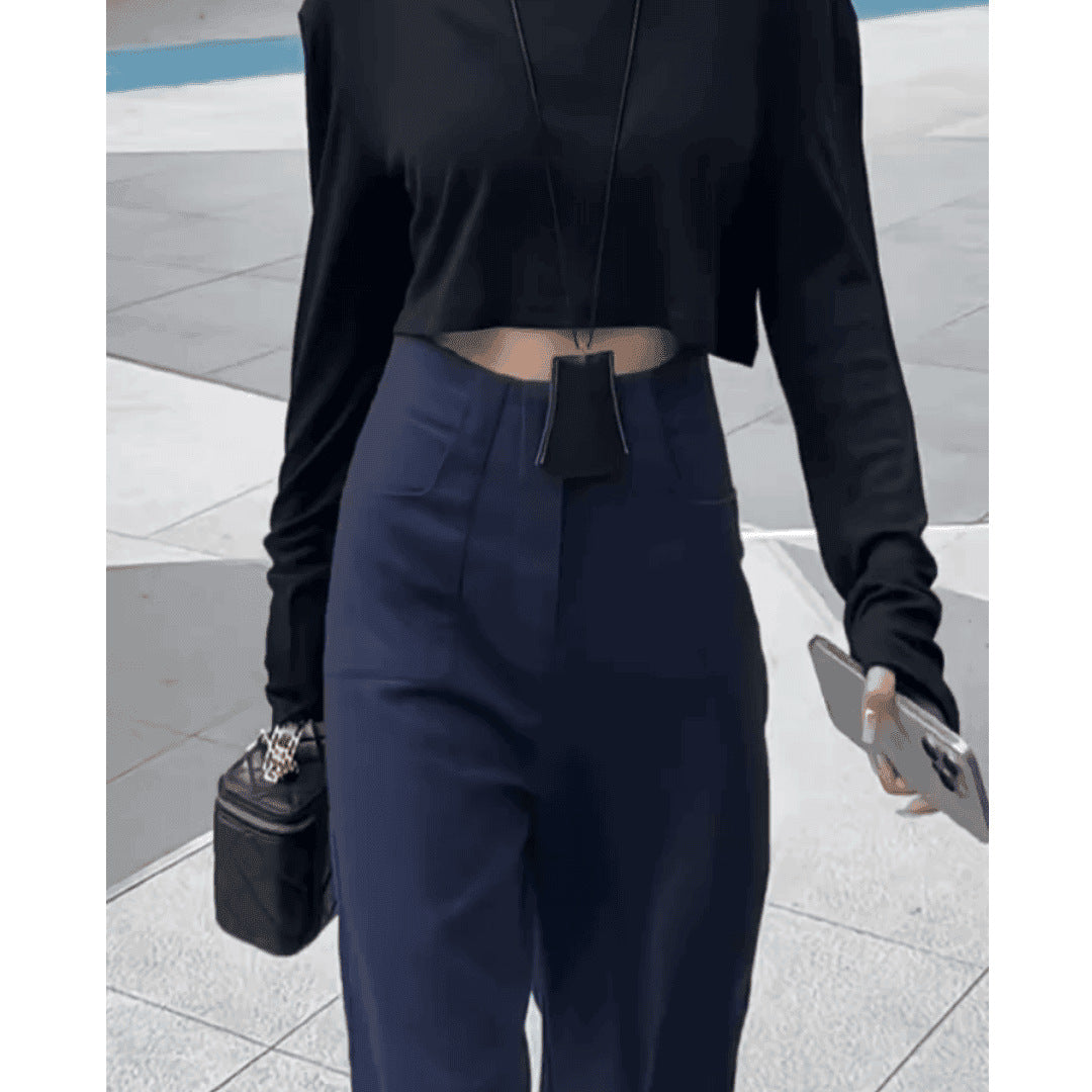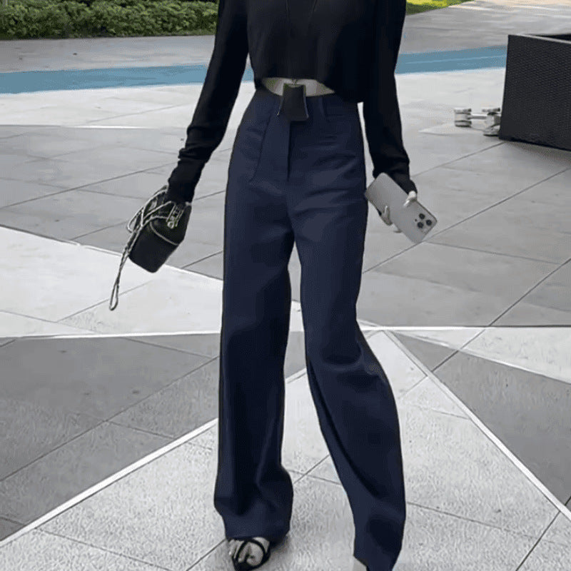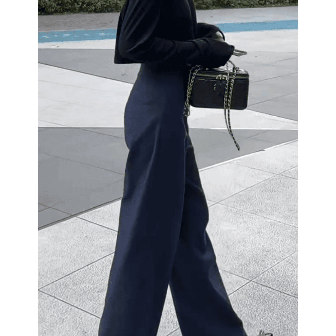 Black Broad-Legged Casual Suit Pants Women Summer Thin High-Waisted Small Man With Loose Thin Straight Trousers
