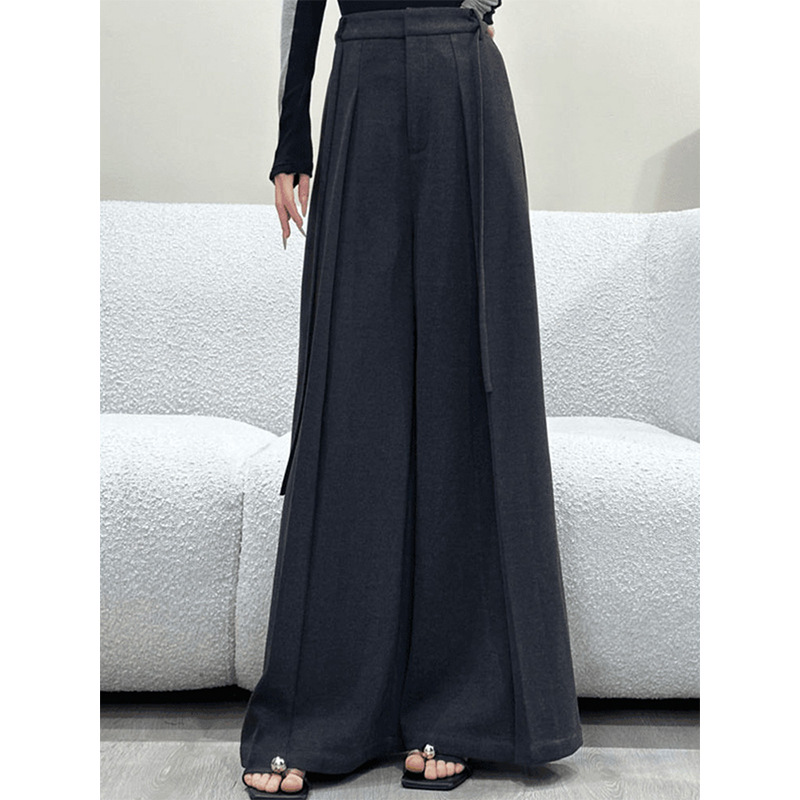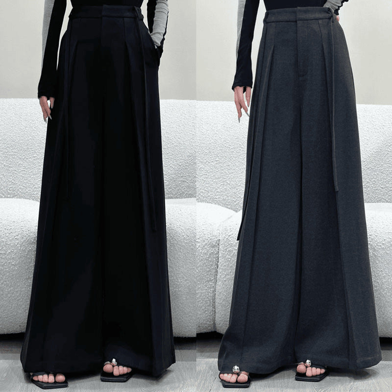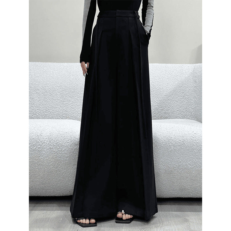 Black High-Rise High-Waisted Broad-Legged Casual Pants Women Autumn New Loose-Fitting Thin Trousers