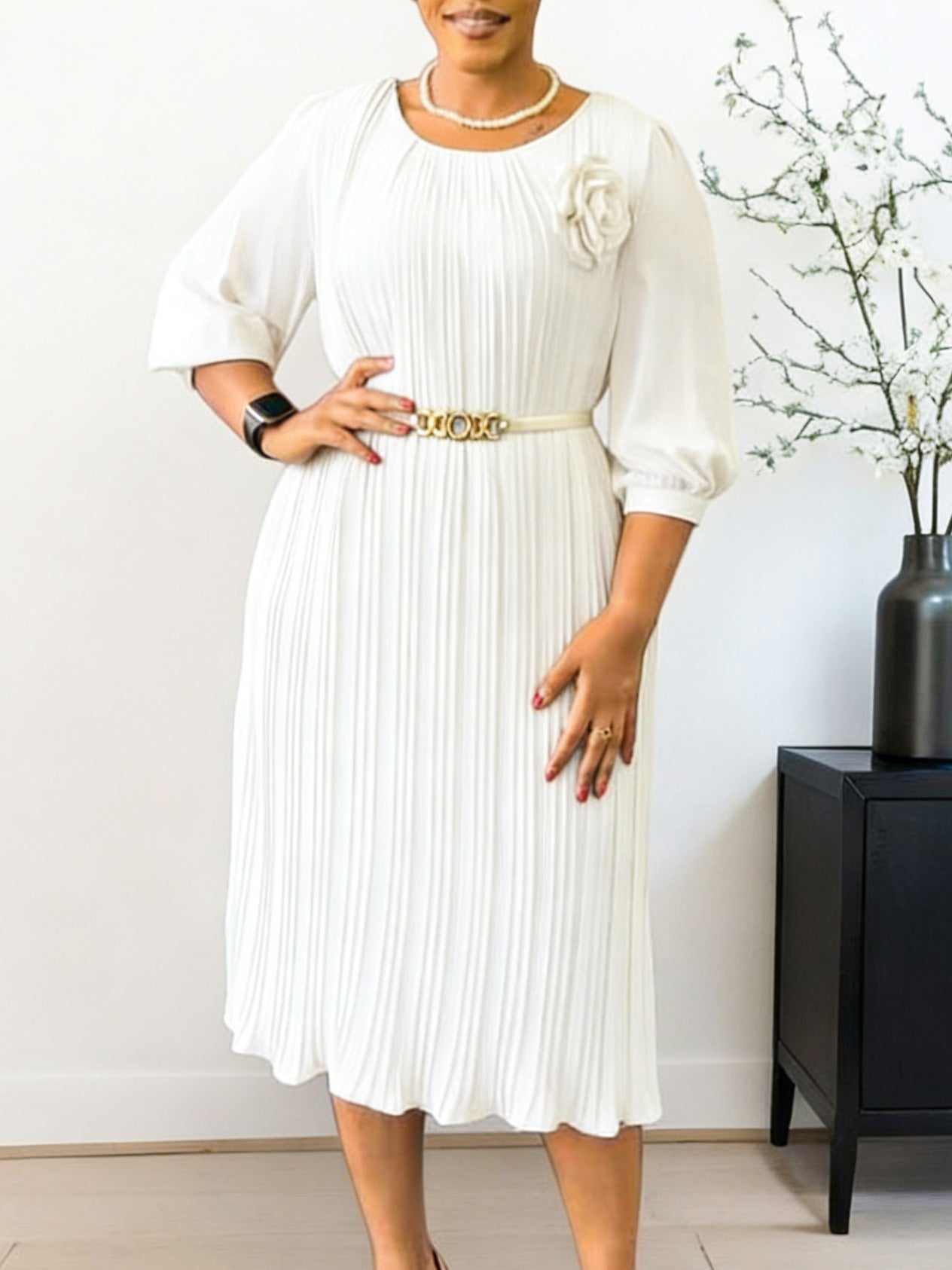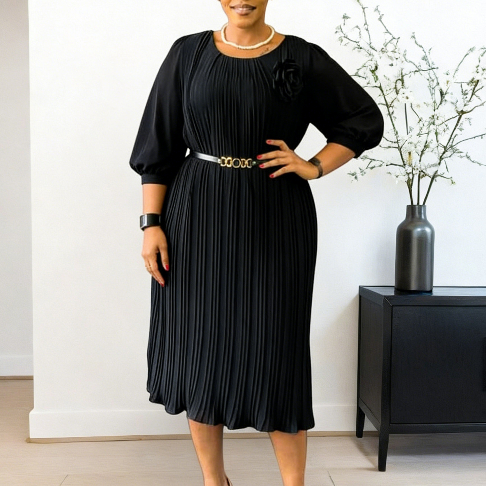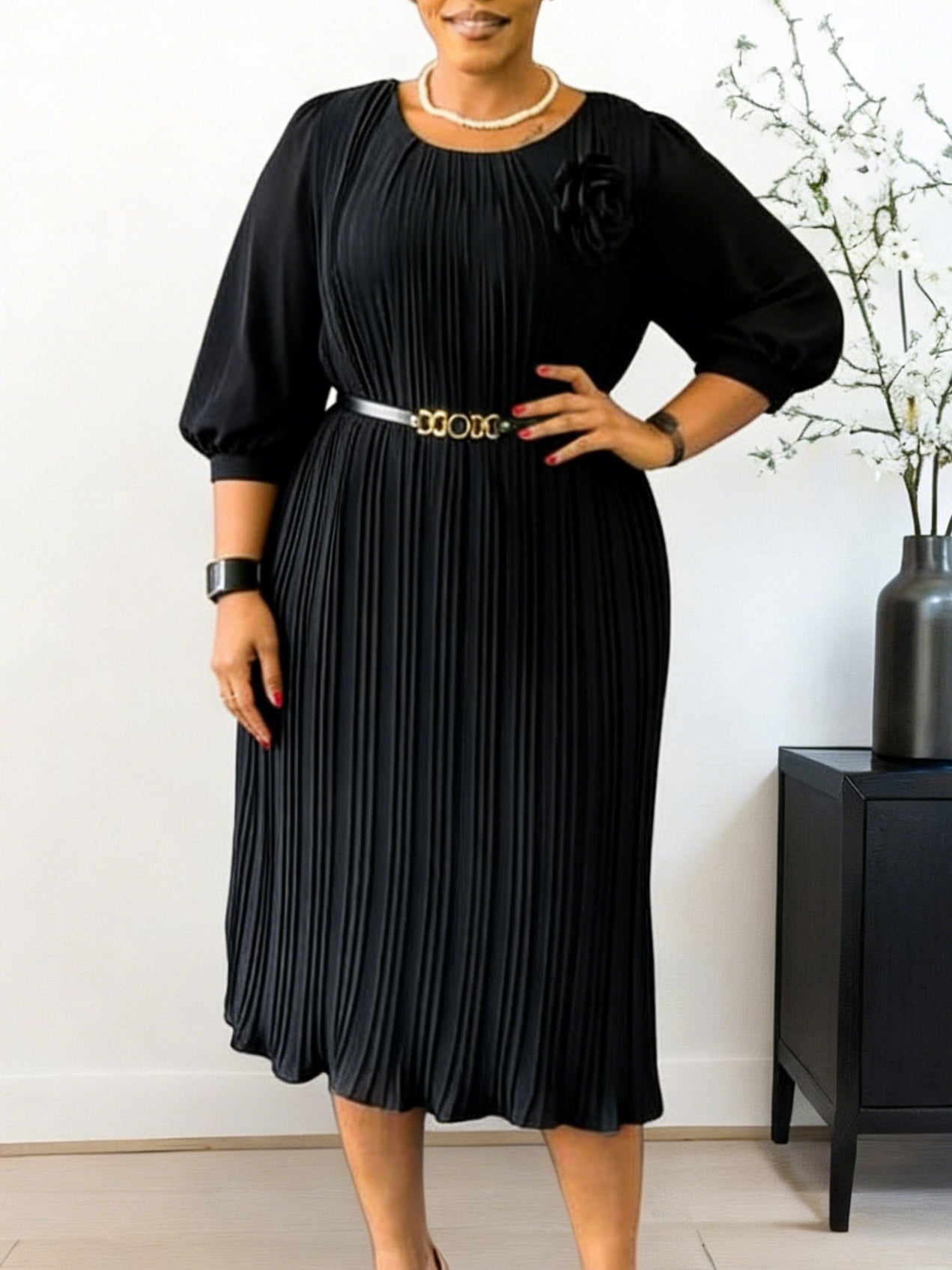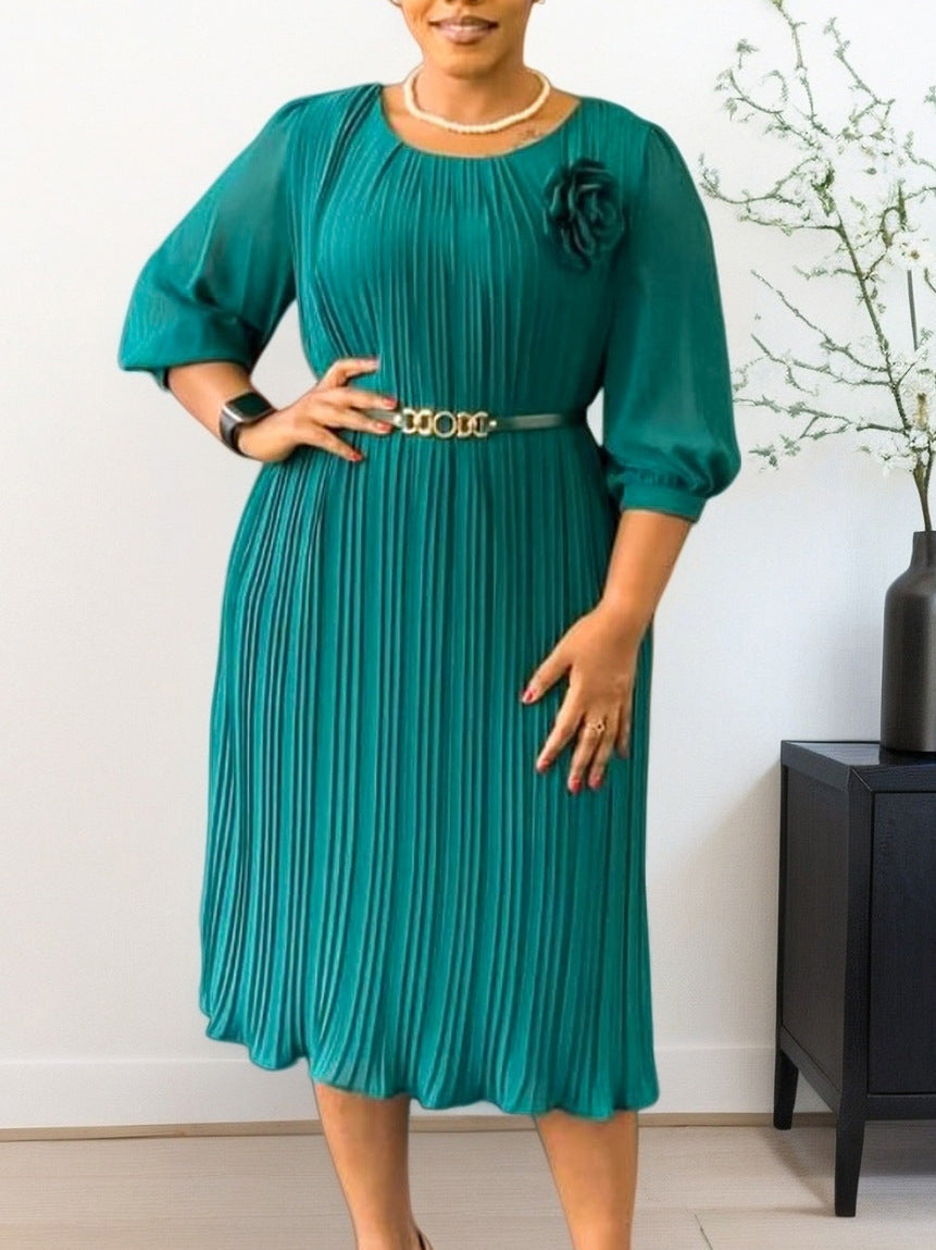 AM030536 Fashion Three-Dimensional Flower Dress Sexy Shoulder Slanted Hundredfolded Dresses HZ0107