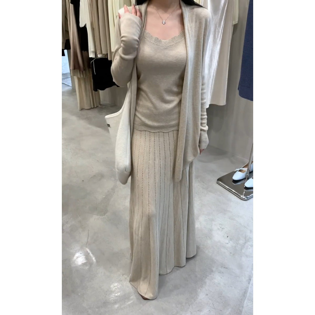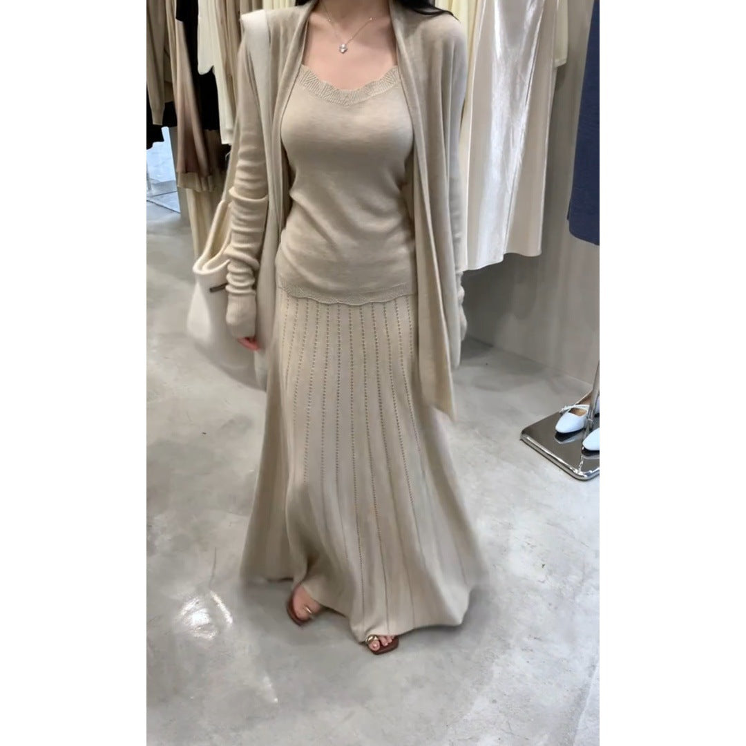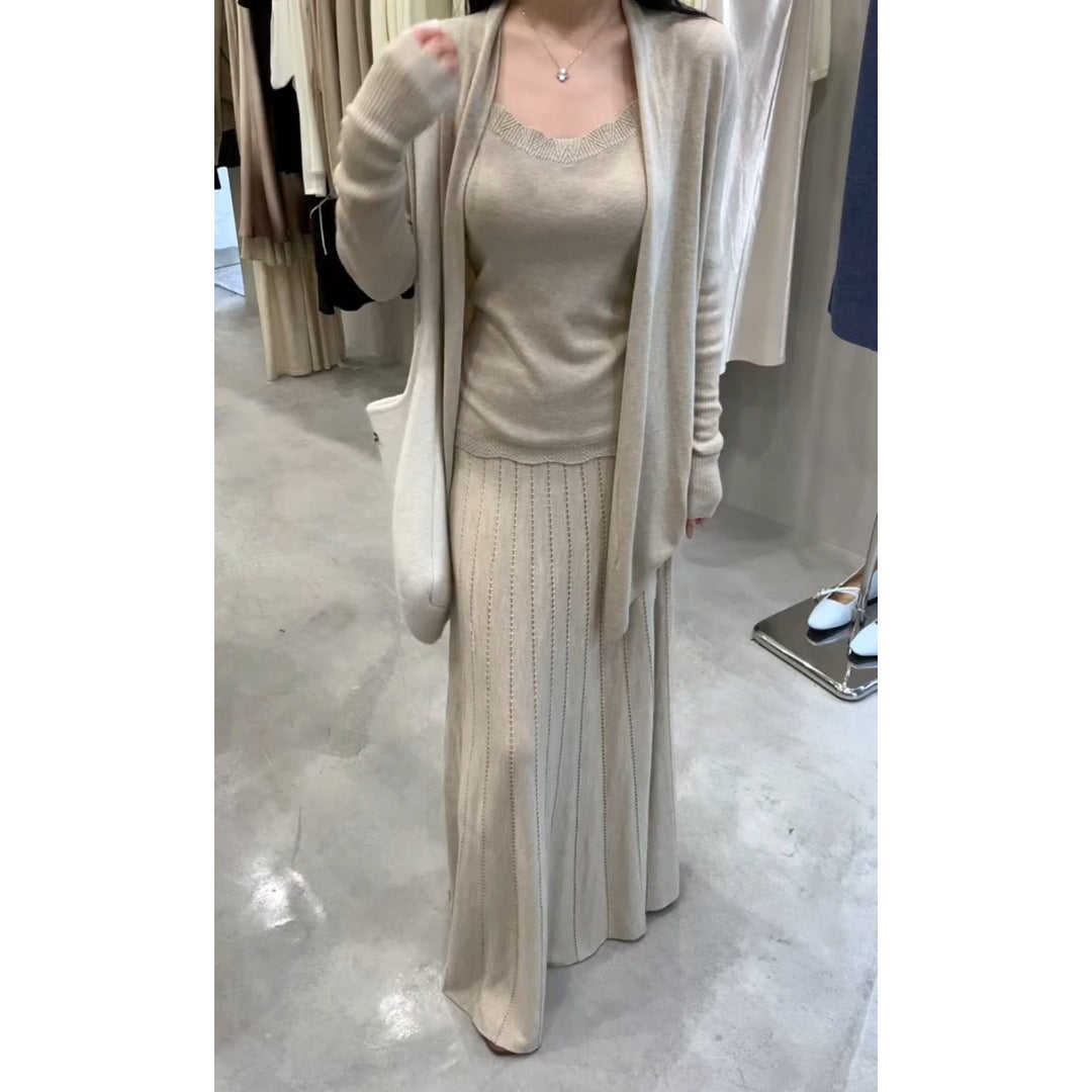 In The Autumn Of 2025, The New Women's Long-Sleeved Knitted Cardigan Is Hoisted With A High-Rise Half-Body Skirt.