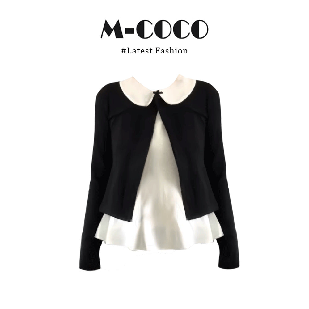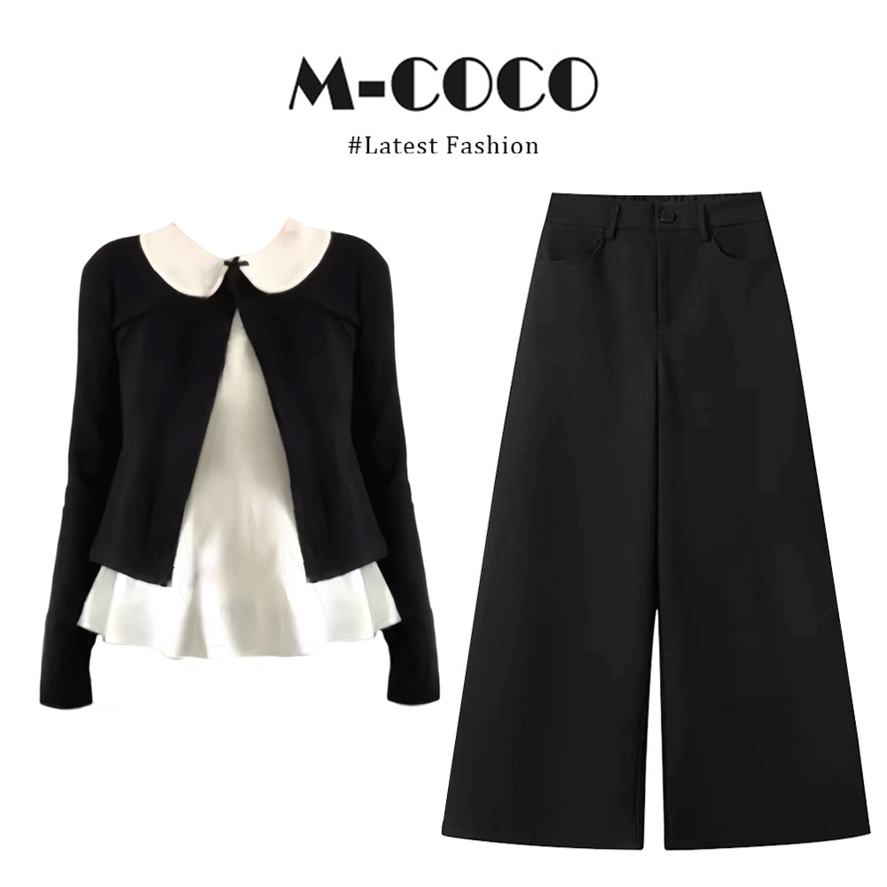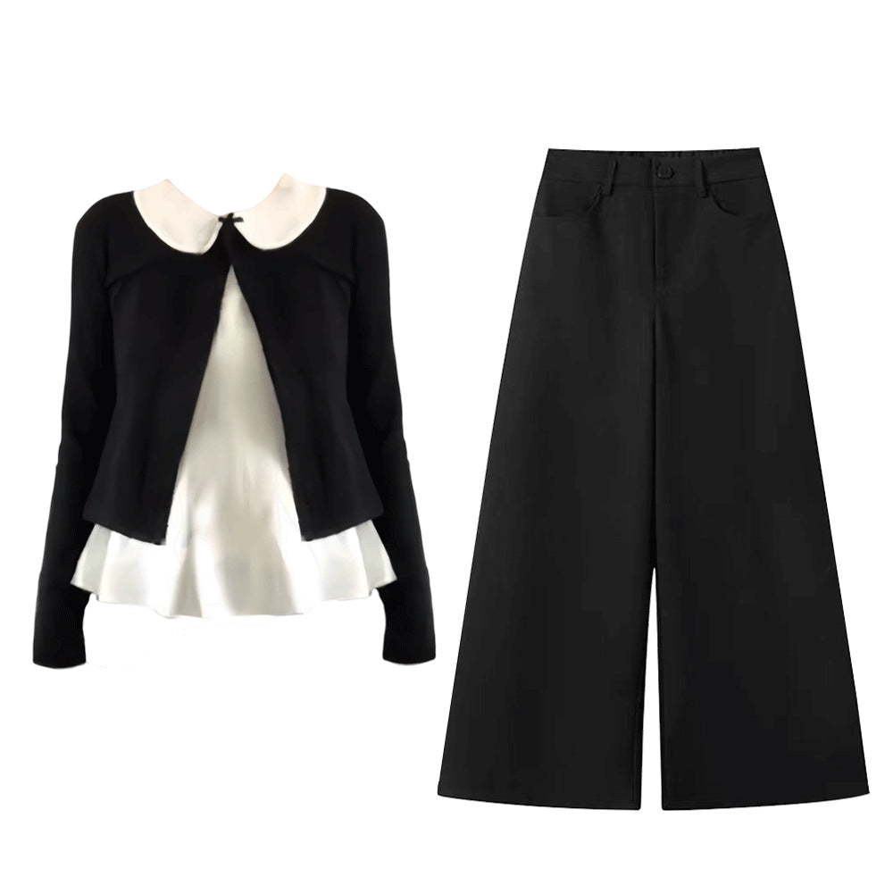 Korean High-Grade Black Knitted Cardigan Doll Collar Bottom Shirt Jersey Trousers Three-Piece Set