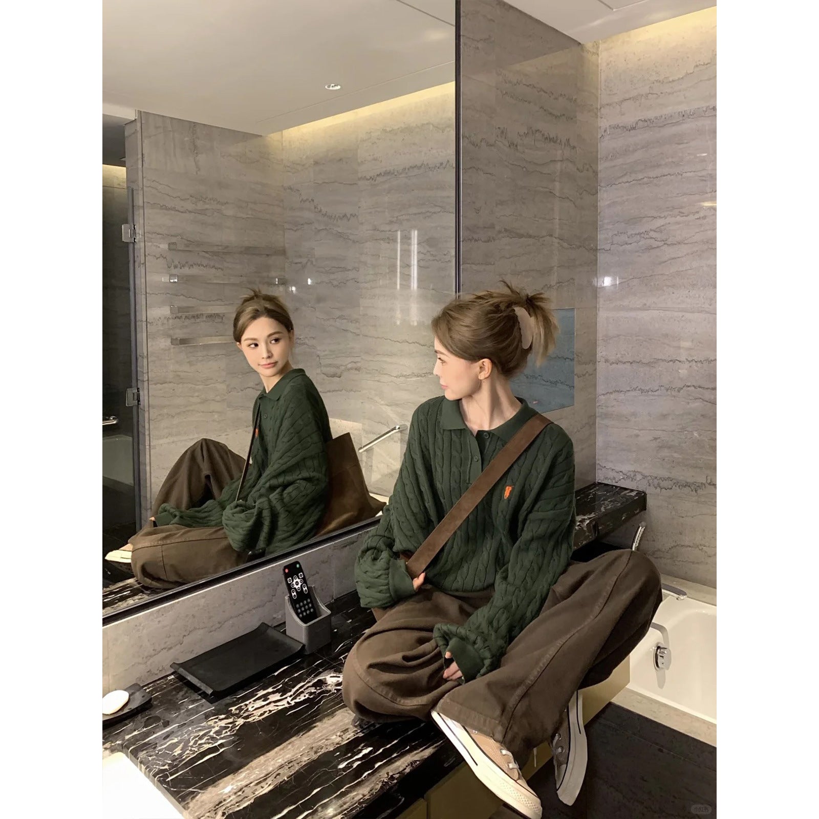 Korean Retro Polo Collar Soft Jasmine Sweater Women 2025 Autumn And Winter New Loose Lazy Knitted Shirt Top