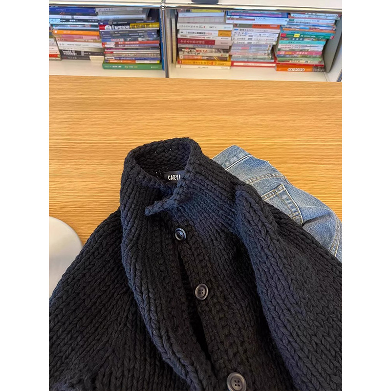 Lazy High-End Feeling Black Collar Soft Jasmine Sweater Coat Autumn And Winter New Thick Loose Knitted Shirt Top