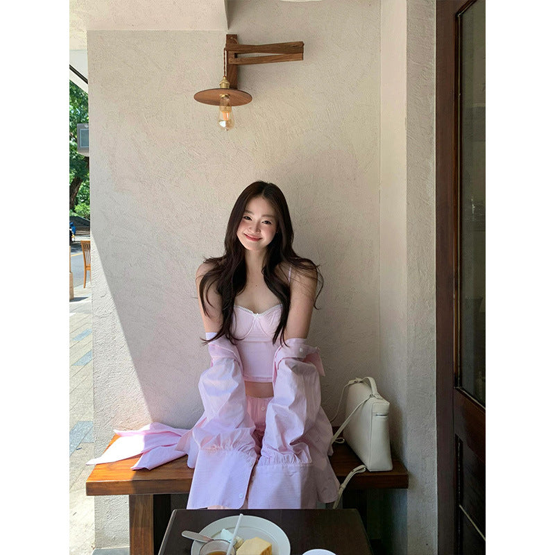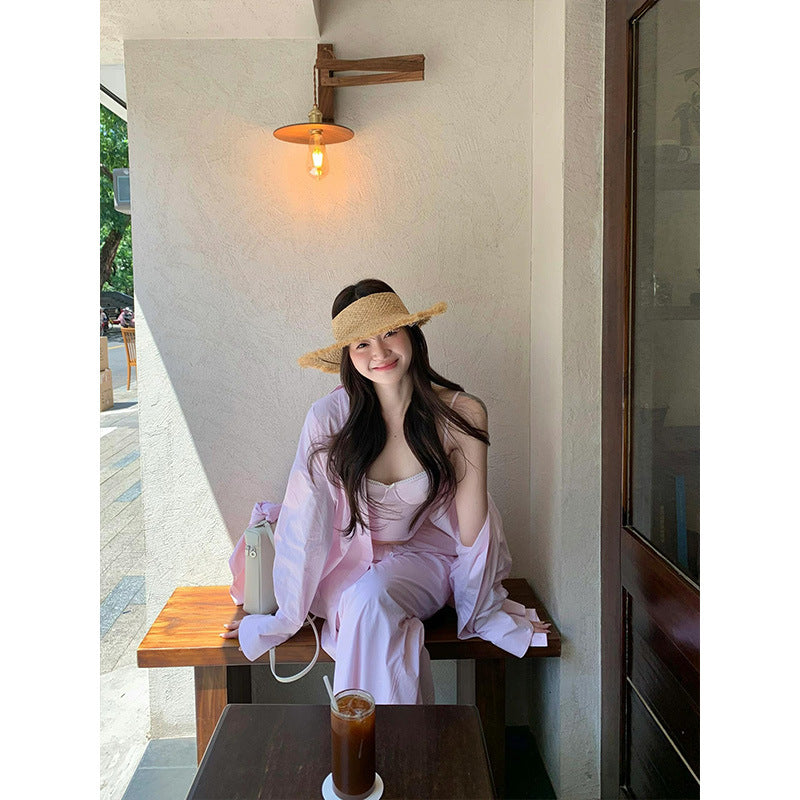 Lazy Wind Relaxation Long-Sleeved Sunscreen Shirt Sling High Waist Hanging Feeling Thin Leisure Pants Three-Piece Summer New Summer
