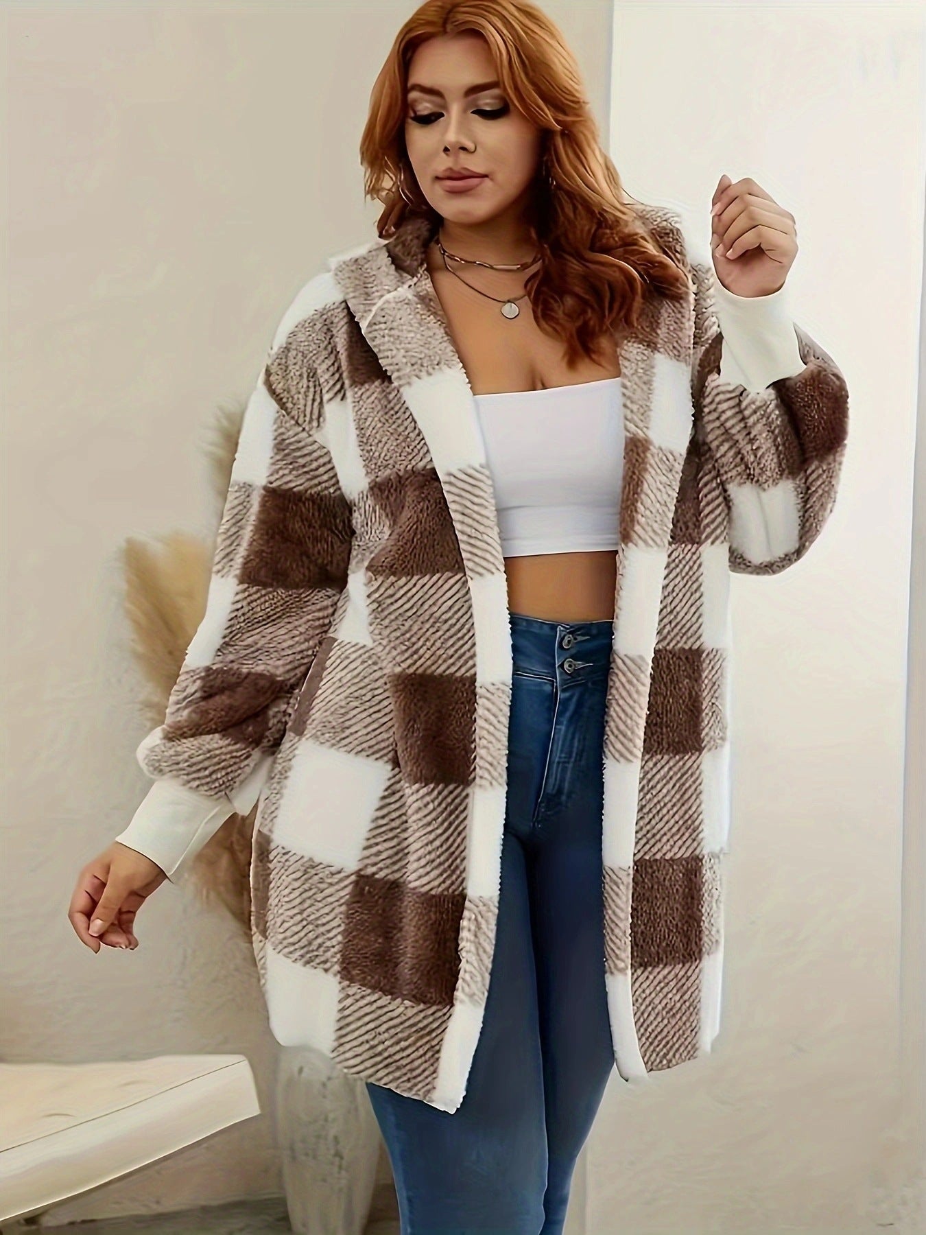 New Fashion Plush Long-Sleeved Rib Hooded Loose Coat
