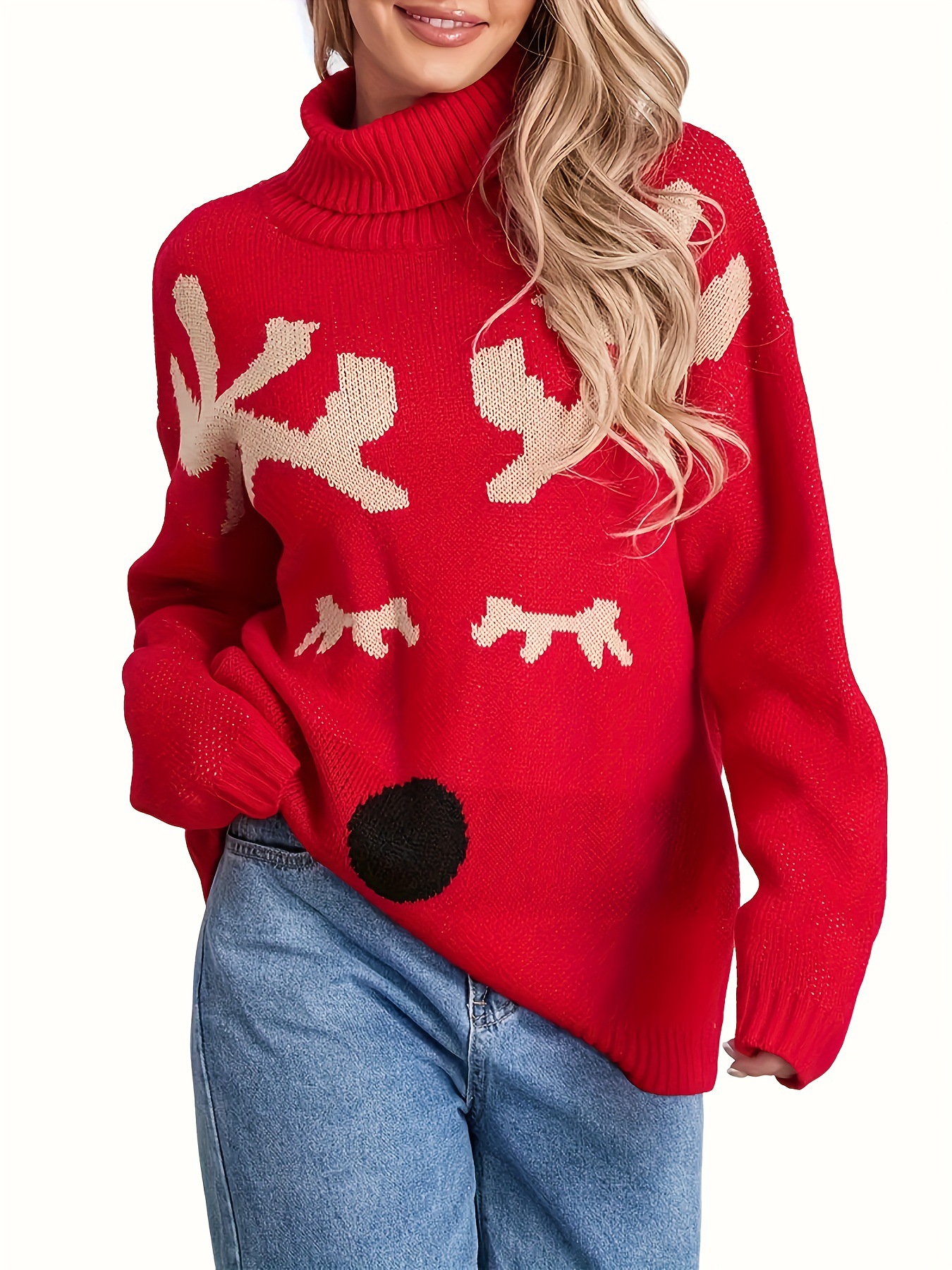 New Women's Clothing For Autumn And Winter 2025 Loose Christmas Elk Tweed Casual Long-Sleeved Sweater