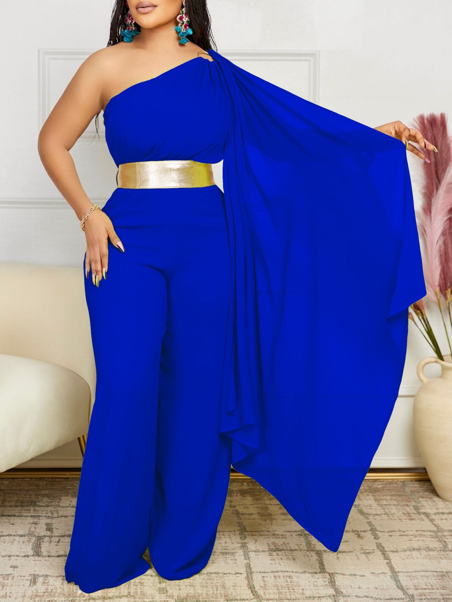 Pants Women's 2025 Spring And Summer New Fashion Temperament Collar Splicing Folding OL High-Waisted African Jumpsuit HZ0107