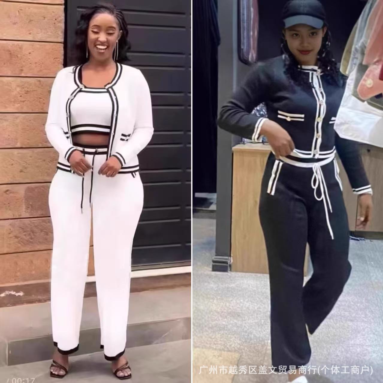 Round-Neck Long-Sleeved Knitted Shirt Coat + Straight Trousers + Vest Three-Piece Set High Quality Women's Clothing HZ0107