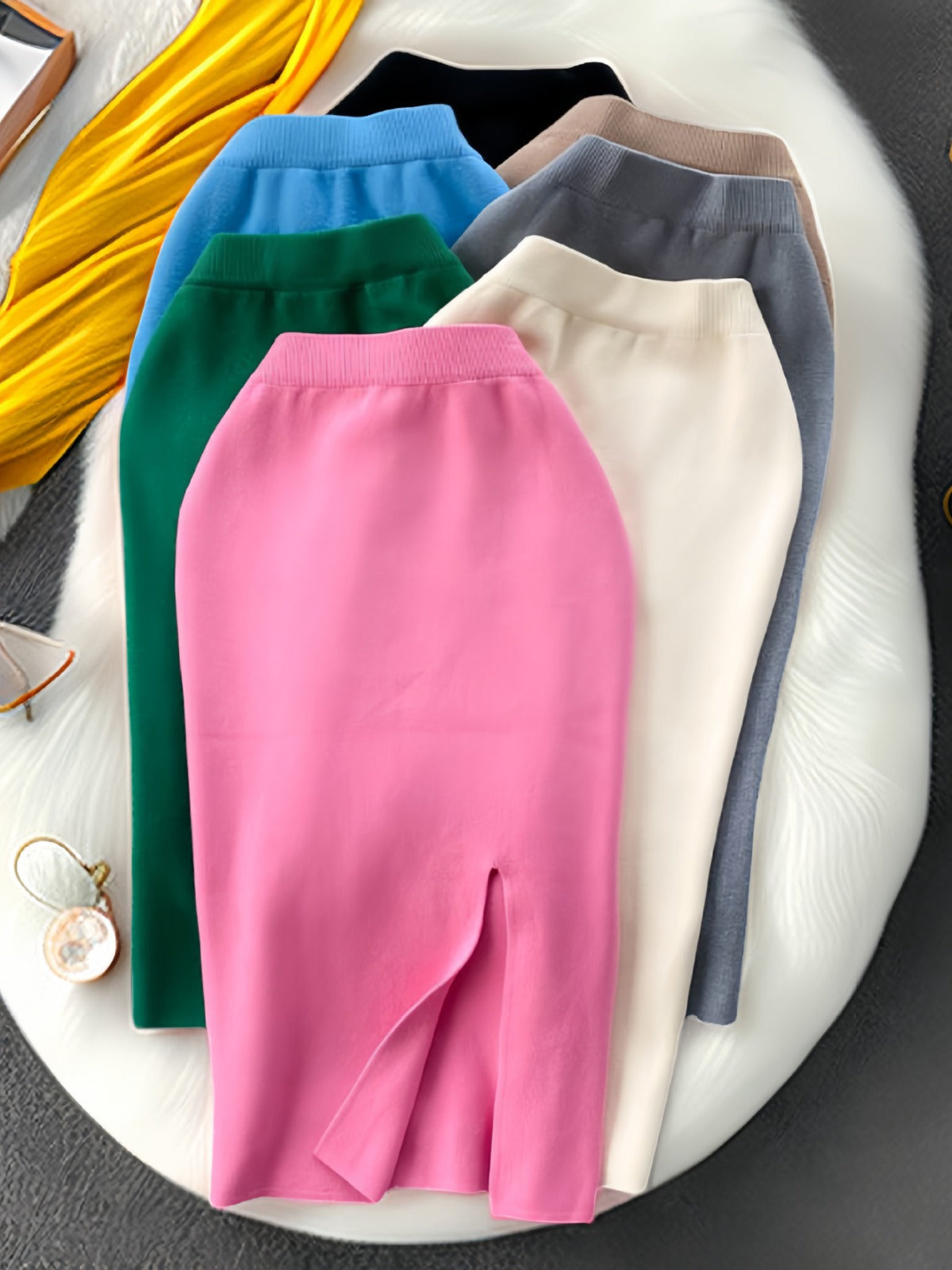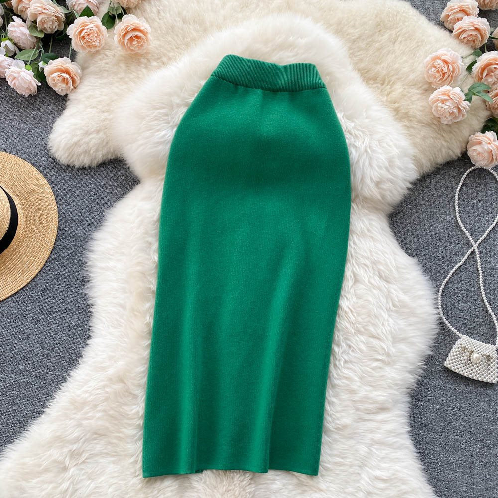 Simple Solid Color Skirt Winter With Sweater High Waist Thin Temperament Open Elastic Knitted Hip Long Skirt