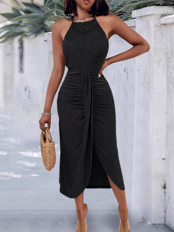 AM040503 Summer New Sexy Hollow Half-High Collar Dress Party Dinner Nail Beads High Waist Dress Dress HZ0107