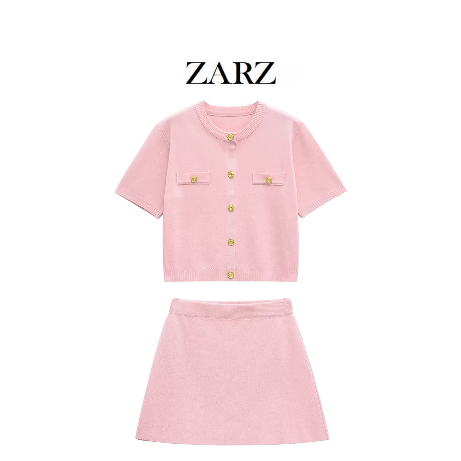 ZARZ Homemade New Women's Classic Short Sleeve Knitted Blouse Flat-Pin Miniskirt 623609 HZ0107
