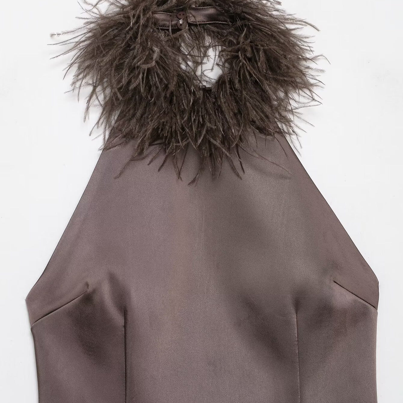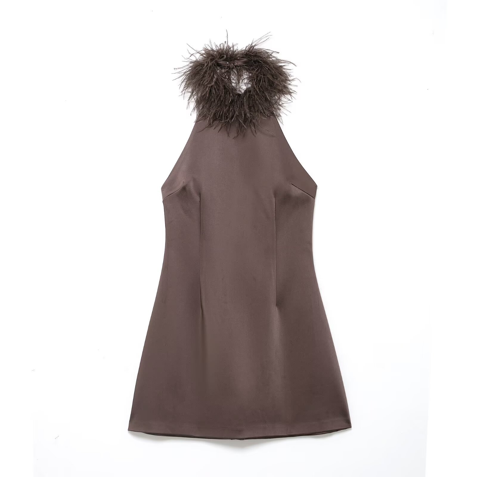 ZARZ Homemade New Women's Clothing Fashion Feather Hanging Neck Dress 4772209 HZ0107