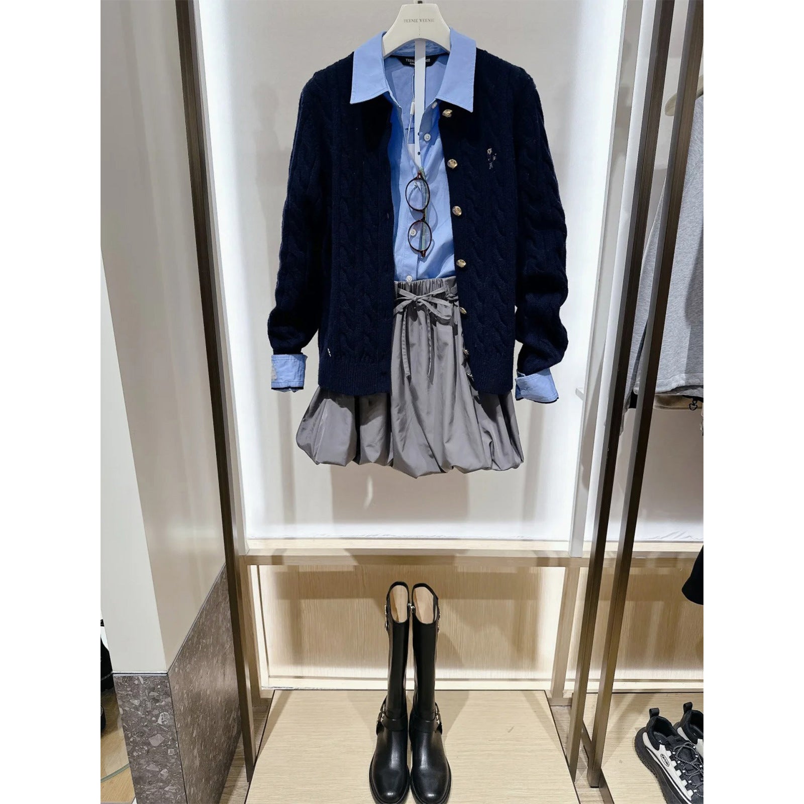 Zhao Luth Wears The Same Early Autumn Wearing A 2025 Korean Age-Reed College Style Sweater Shirt Shirt Three Sets